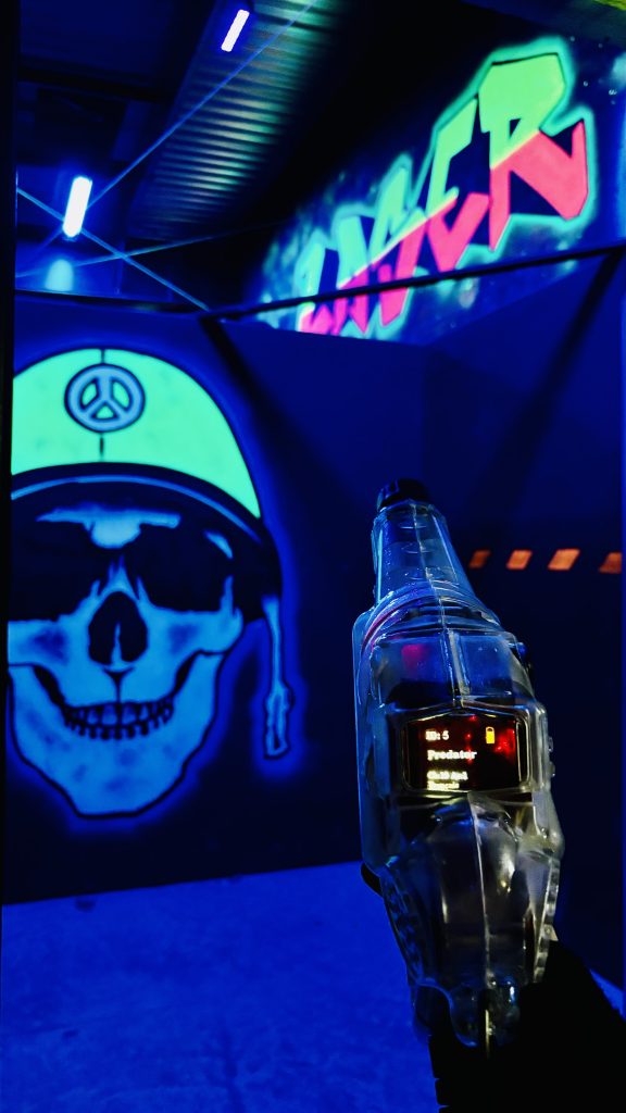 Un labyrinthe de 356 m² avec des niveaux surélevés dans de la fumée en lumières noires et avec de la musique. Des rampes antidérapantes permettent d’accéder aux plateformes. Aucun obstacle n’existe sur le parcours. Des fenêtres existent également à travers lesquelles vous pouvez tirer.